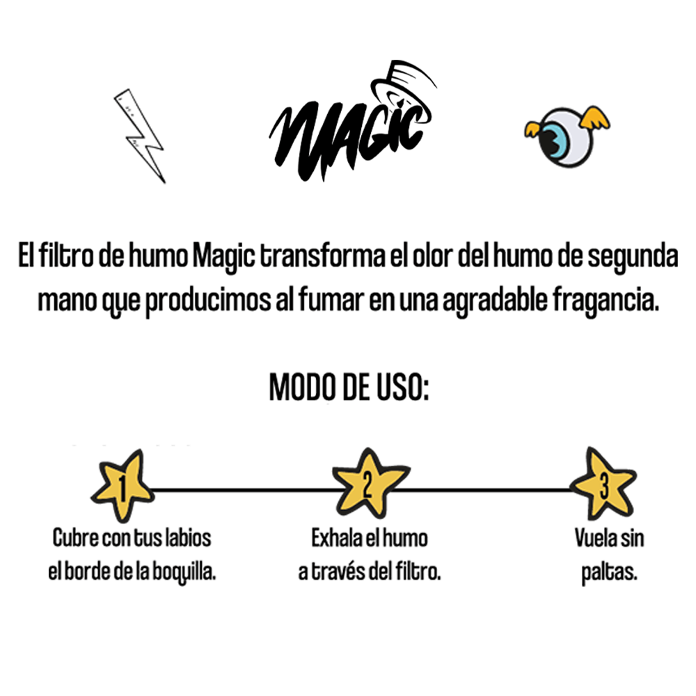 El Filtro de Humo Magic Original convierte cada exhalación en una experiencia de equilibrio perfecto entre suavidad y frescura. Su avanzada tecnología de filtrado elimina las partículas de olor del humo y deja tras de sí una combinación de pureza con un toque floral, como si una suave brisa primaveral atravesara el aire.